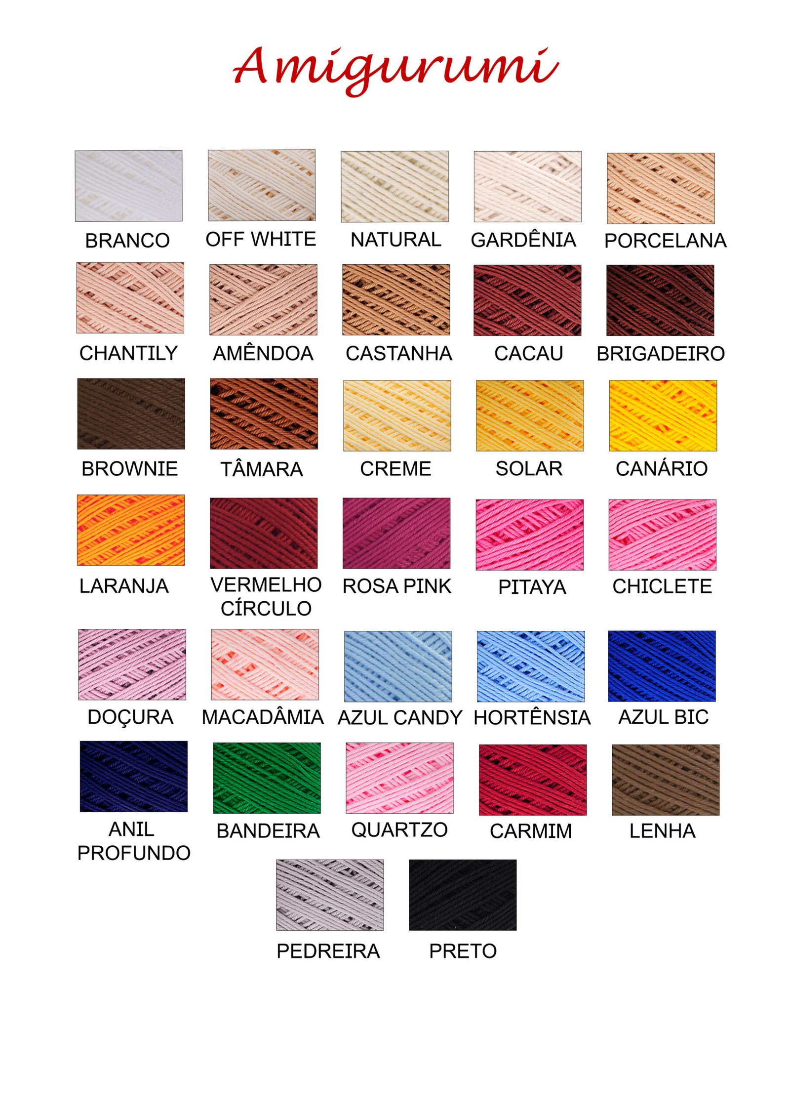 Amarelo Canário ,Amêndoa ,Anil-Profundo ,Azul Bic ,Azul Candy ,Bandeira ,Branco ,Brigadeiro ,Brownie ,Cacau ,Carmim ,Castanha ,Chantilly ,Chiclete ,Creme ,Doçura ,Gardênia ,Hortênsia ,Laranja ,Lenha ,Macadâmia ,Natural ,Off-White ,Pedreira ,Pitaya ,Porcelana ,Preto ,Quartzo ,Rosa-Pink ,Solar ,Tâmara ,Vermelho-Círculo |